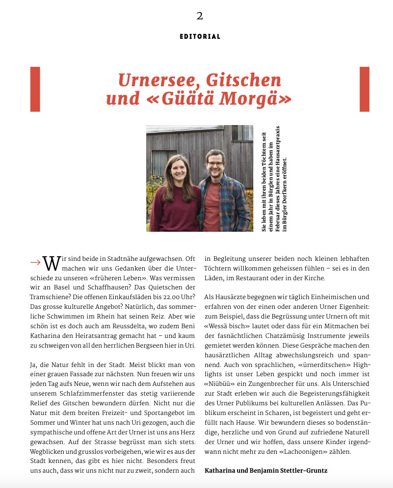 Was der Umzug ins schöne Urnerland für Katharina und Benjamin Stettler bedeutet und wieso der Urnersee für die beiden speziell wichtig ist, gibt es unter anderem im Editorial des aktuellen TELL ME zu lesen.